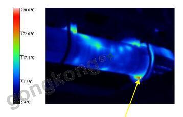 大量使用管道的情況下,自然存在很多的連接法蘭。由于法蘭的密封可能容易發(fā)生問題,導(dǎo)致管道輸送蒸汽、原料、產(chǎn)品等在管道法蘭的連接處有泄漏。利用熱像儀很直觀,很簡便、非常安全的發(fā)現(xiàn)泄漏處,而不是依靠聽-看-聞-摸非常不安全的檢測方式。